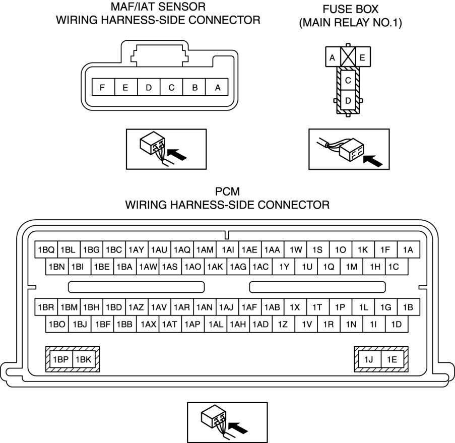 - MAF/IAT sensor terminal A and main relay No.1 terminal D