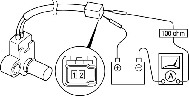 3. Connect the VSS terminal 2 to the battery positive terminal, connect the battery negative terminal to VSS terminal 1 through an ammeter set to a resistance of 100 ohm.