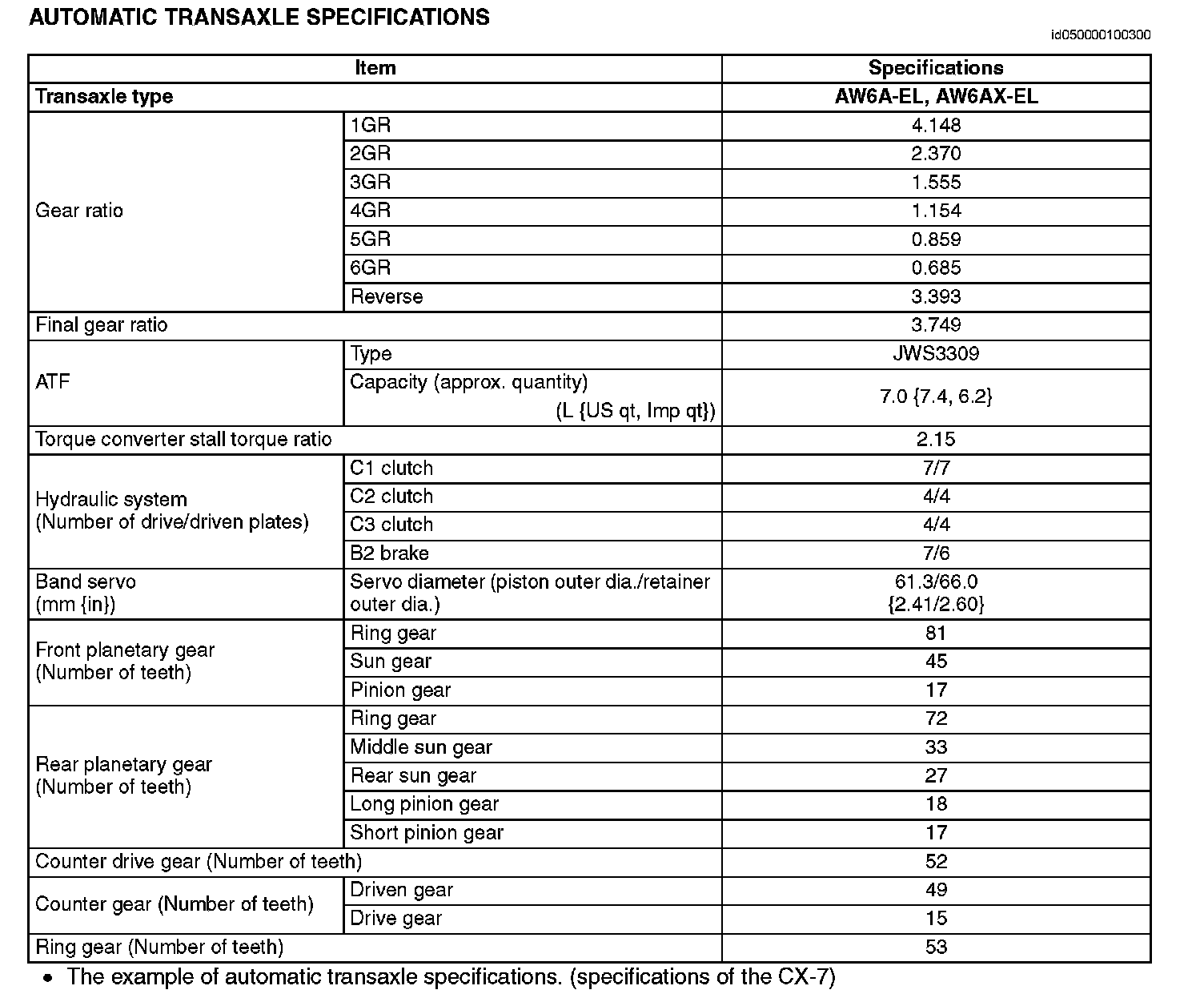 AW6AX-El Automatic Transaxle Specifications