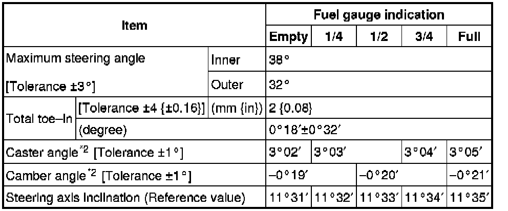 Front wheel alignment [2WD] (Unloaded)*1