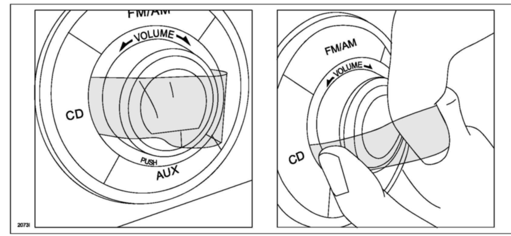 1. Remove the center knob by pulling out using a firm grip, or by using tape as shown.