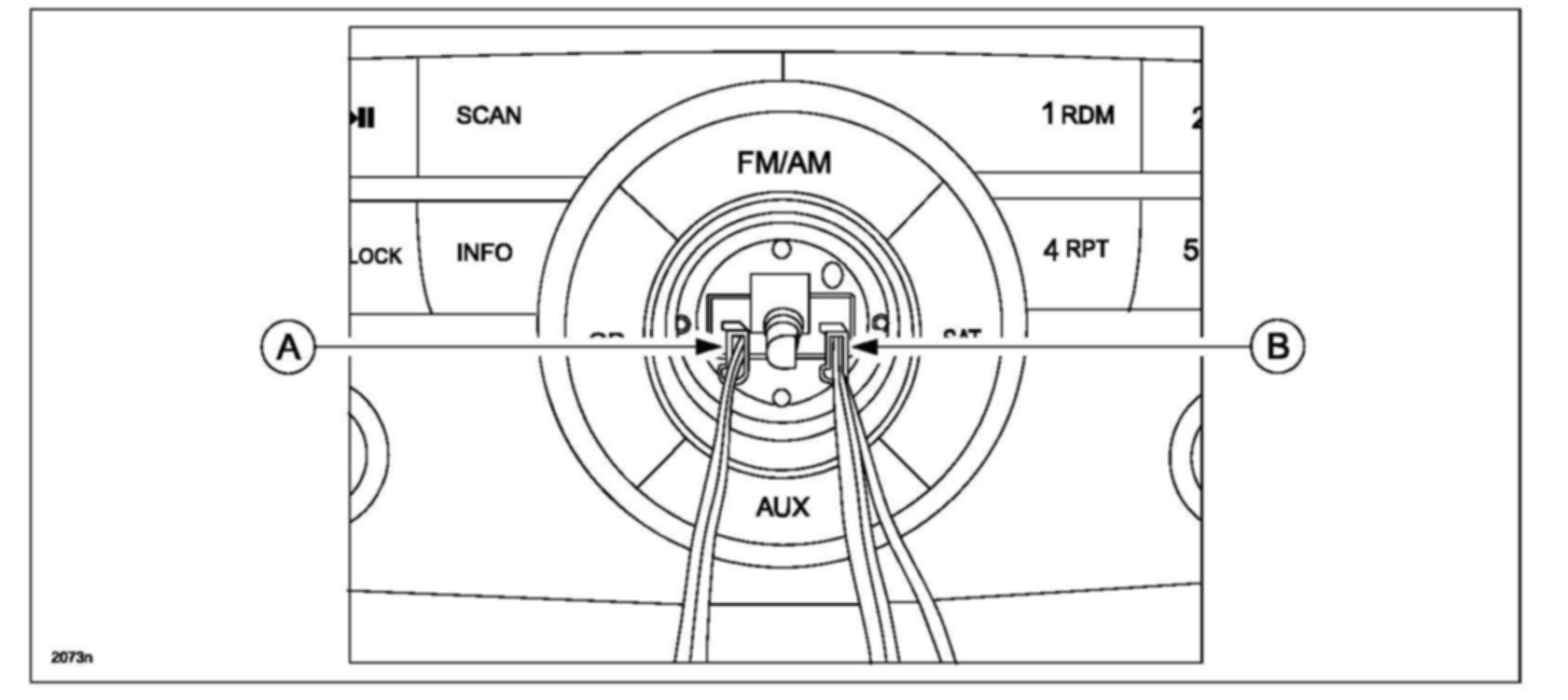 b. Connect the 4P connector with red/white wires into the right connector (B) under the removed knob.