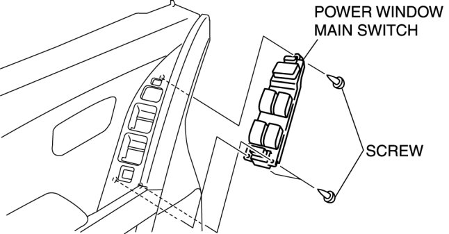 4. Remove the screw, and remove the power window main switch from inside the front door trim.