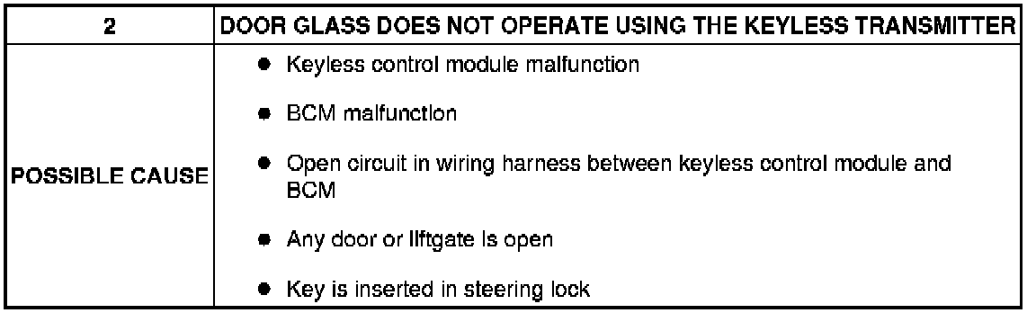 No.2 Door Glass Does Not Operate Using The Keyless Transmitter