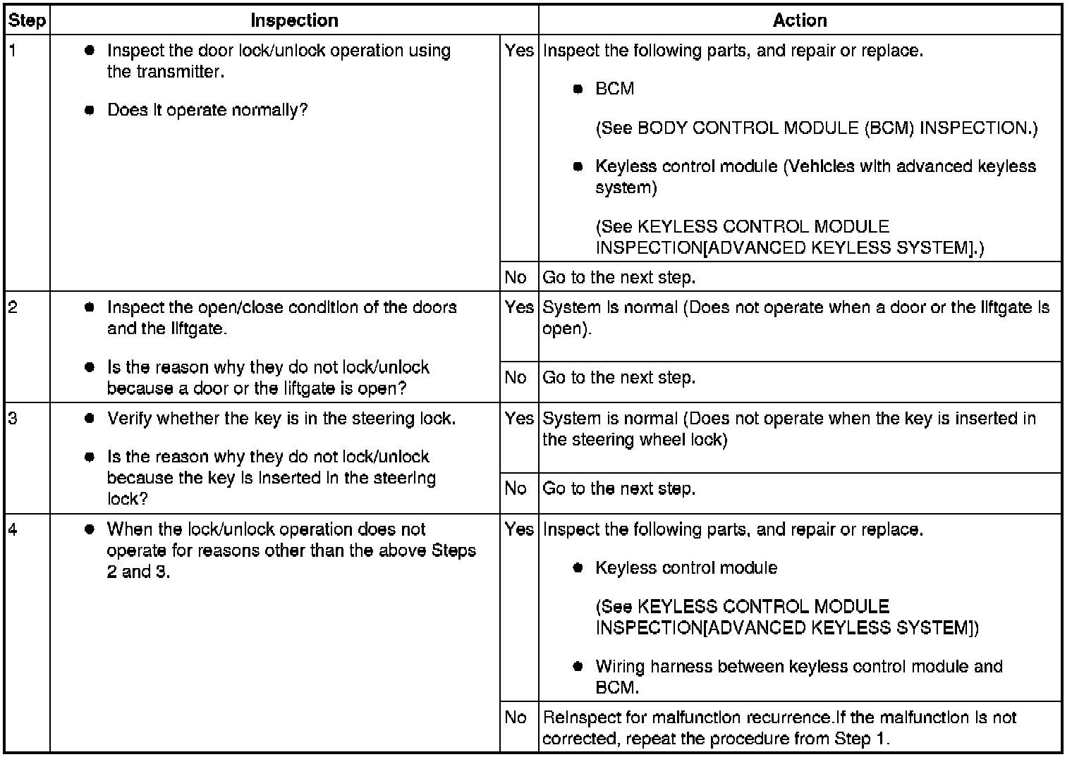 No.2 DOOR GLASS DOES NOT OPERATE USING THE KEYLESS TRANSMITTER [POWER WINDOW SYSTEMS (EXTERIOR OPEN/CLOSE FUNCTION)]