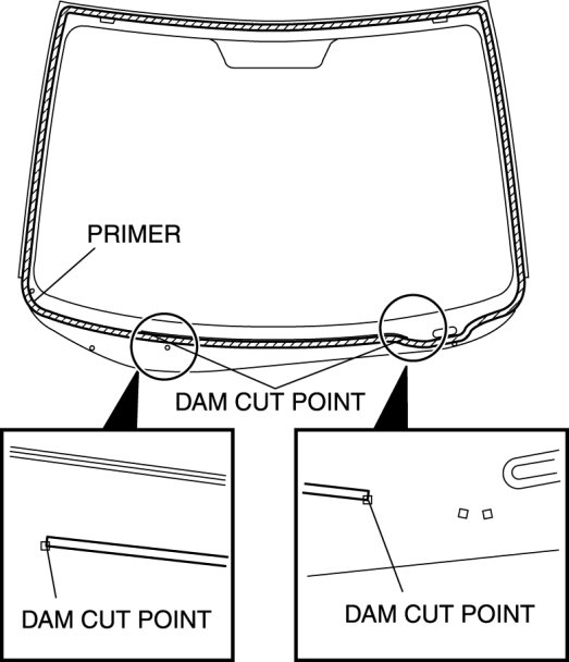 3. If the existing windshield is to be reinstalled, attach the dam along the ceramic voids.
