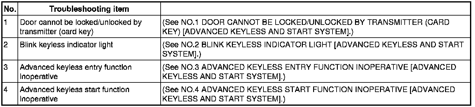 SYMPTOM TROUBLESHOOTING CHART [ADVANCED KEYLESS AND START SYSTEM]