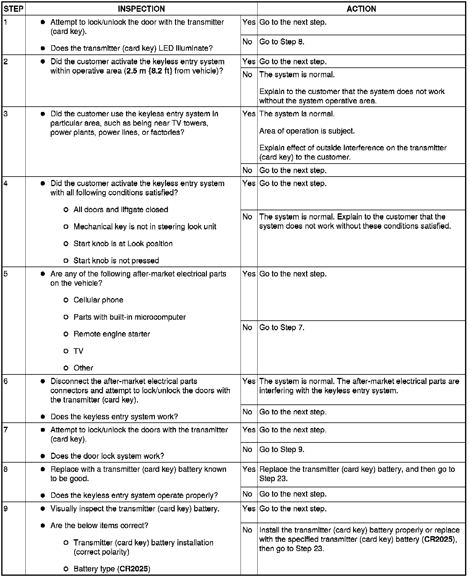 NO.1 DOOR CANNOT BE LOCKED/UNLOCKED BY TRANSMITTER (CARD KEY) [ADVANCED KEYLESS AND START SYSTEM]