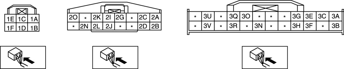 2. If there is large difference between the measured value and the value in the terminal voltage table, inspect the parts under "Inspection item(s)" and related wiring harnesses.