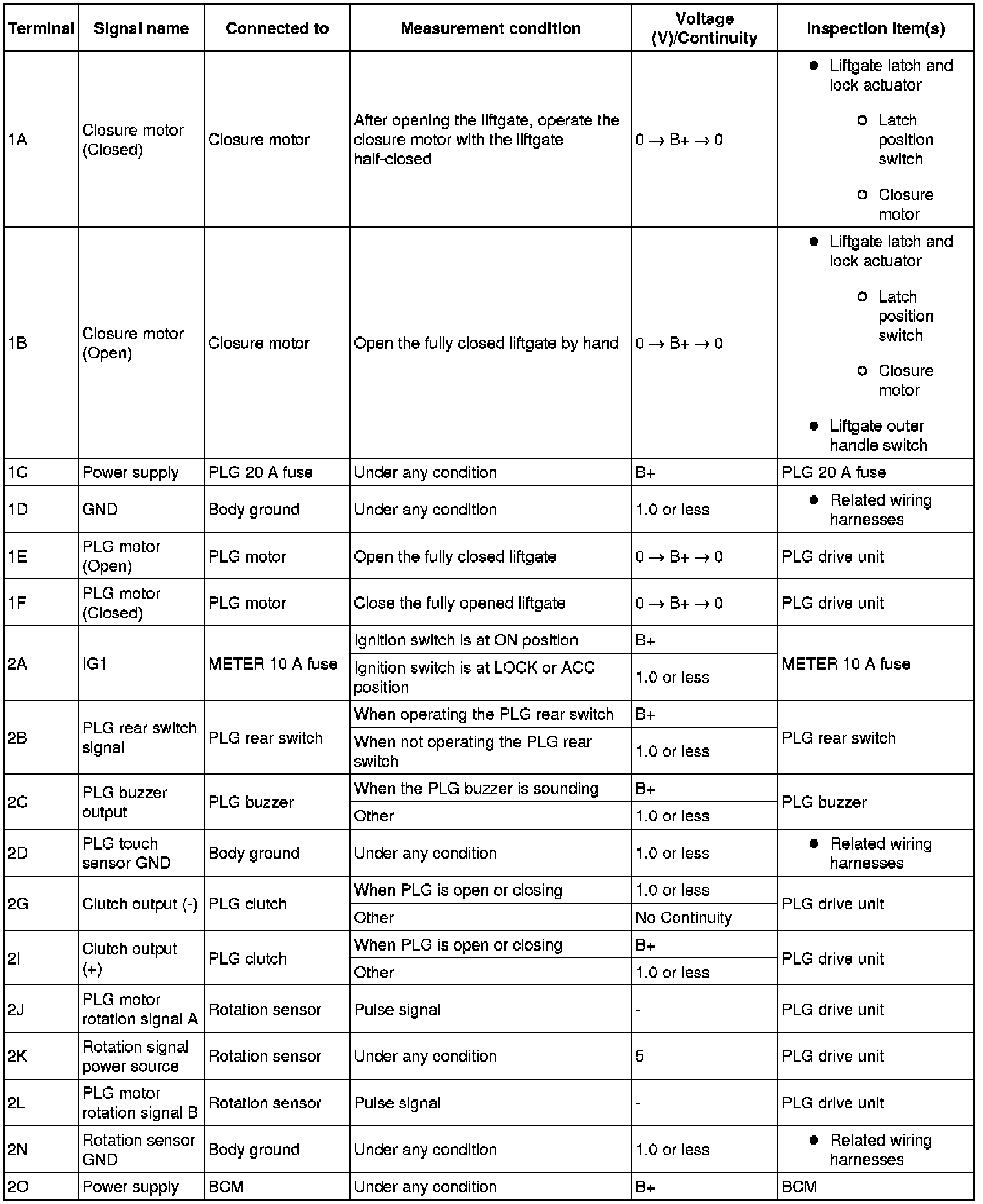 POWER LIFTGATE (PLG) CONTROL MODULE INSPECTION