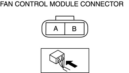 4. Measure the voltage at terminal A of the fan control module connector (2 terminals) as shown in the table.