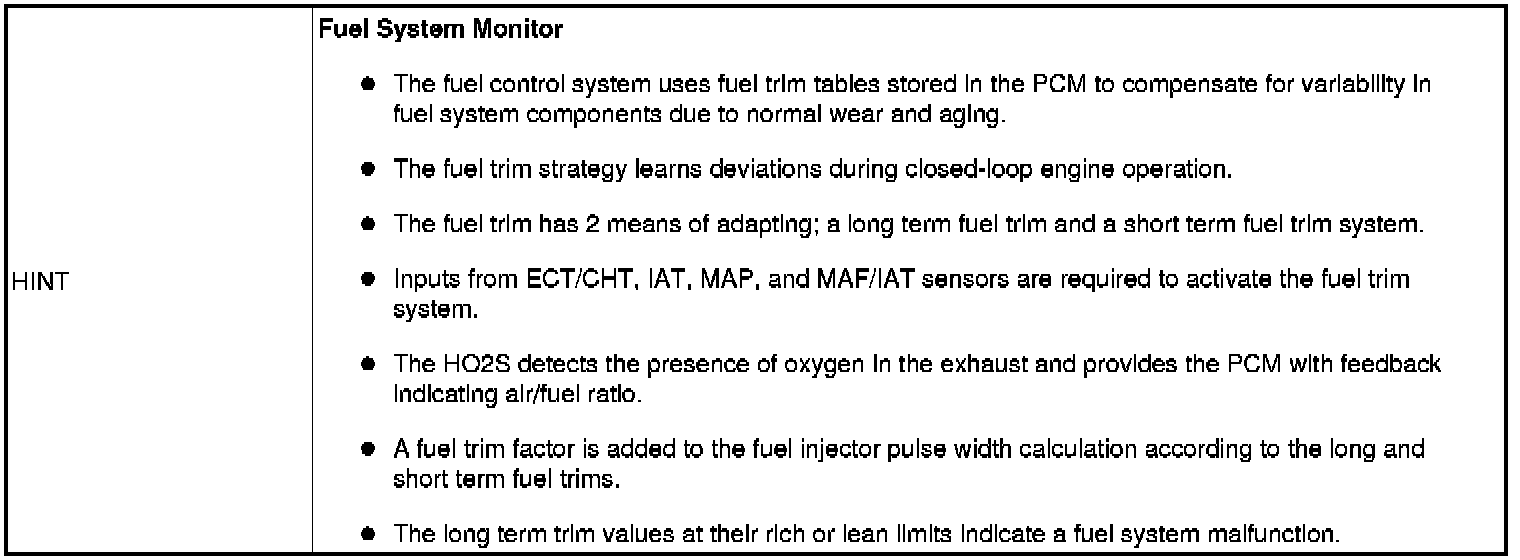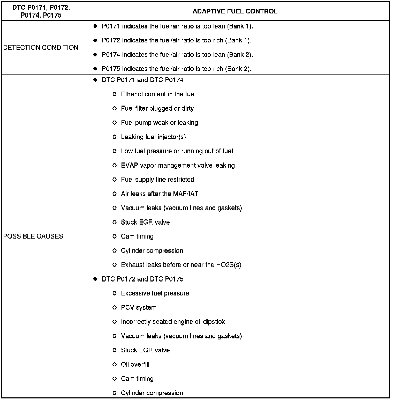 ADAPTIVE FUEL CONTROLDetection Condition/Possible Causes (Part 1):
