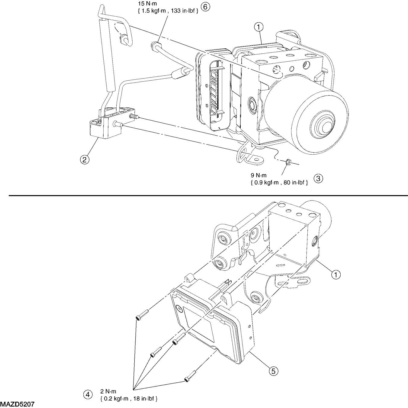 - To install, tighten to 15 Nm {1.5 kgf-m, 133 in-lbf}.