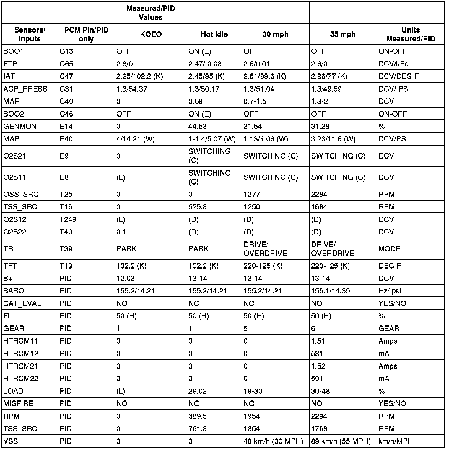 Typical Diagnostic Reference Values (3.0L [4V])