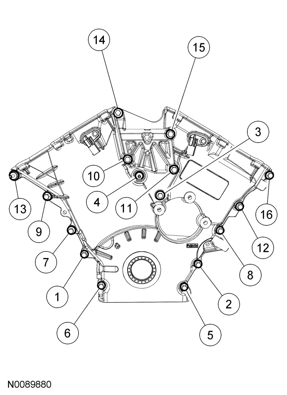 Engine front cover must be installed and the bolts tightened within 4 minutes of applying sealant.