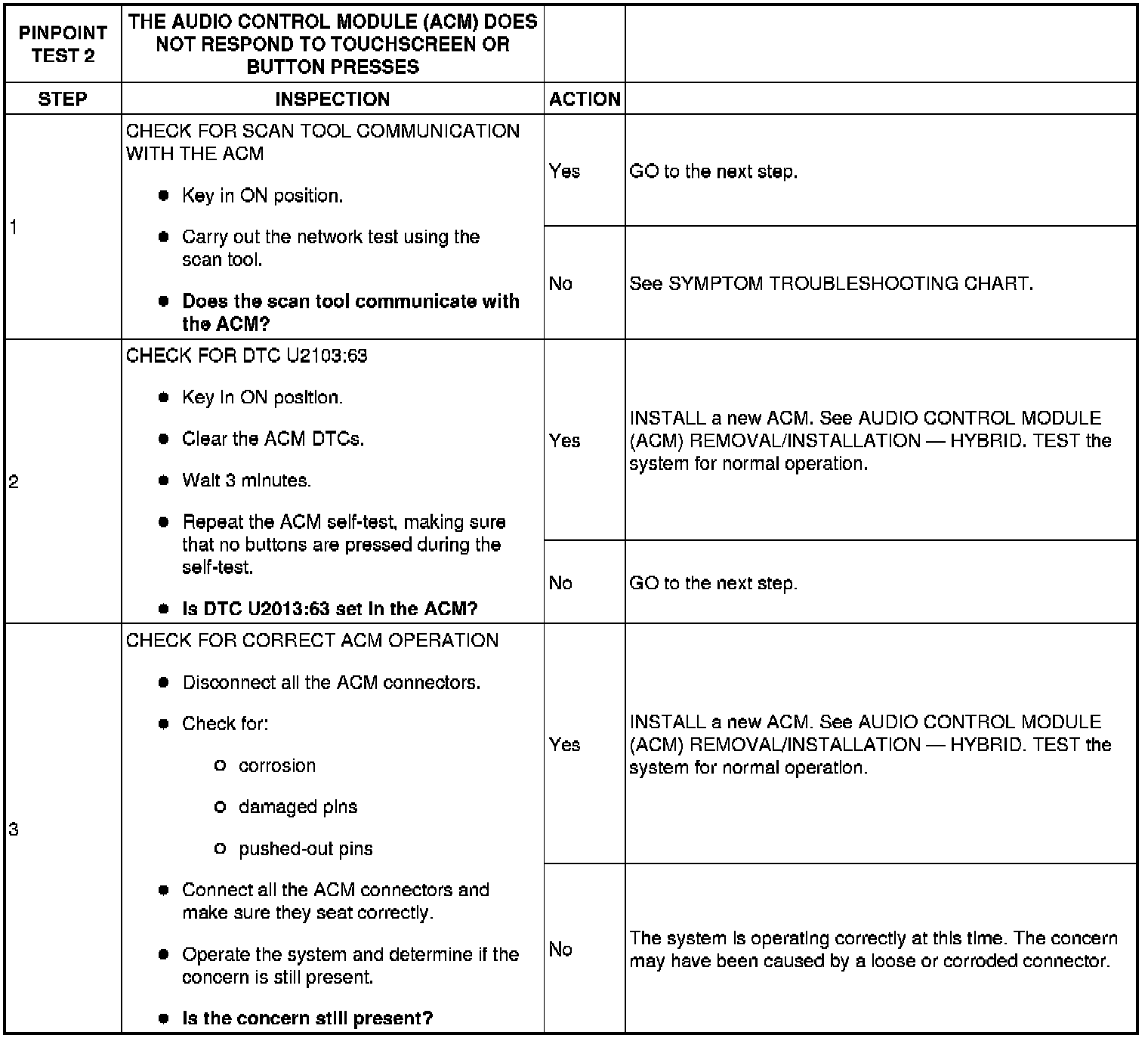 Pinpoint Test 2: The Audio Control Module (ACM) Does Not Respond To Touch Screen Or Button Presses