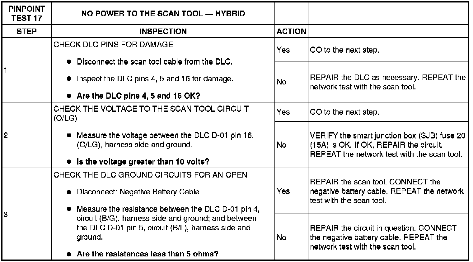 PINPOINT TEST 17: NO POWER TO THE SCAN TOOL - HYBRID