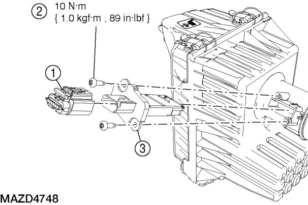 - To install, tighten to 10 Nm {1.0 kgf-m, 89 in-lbf}.