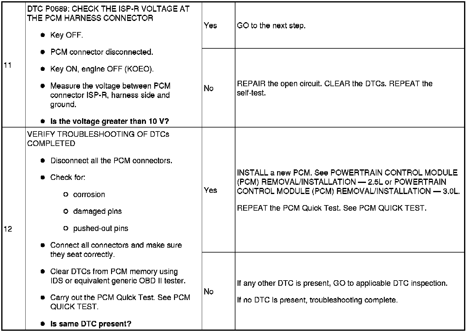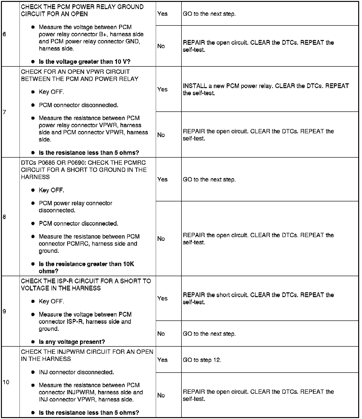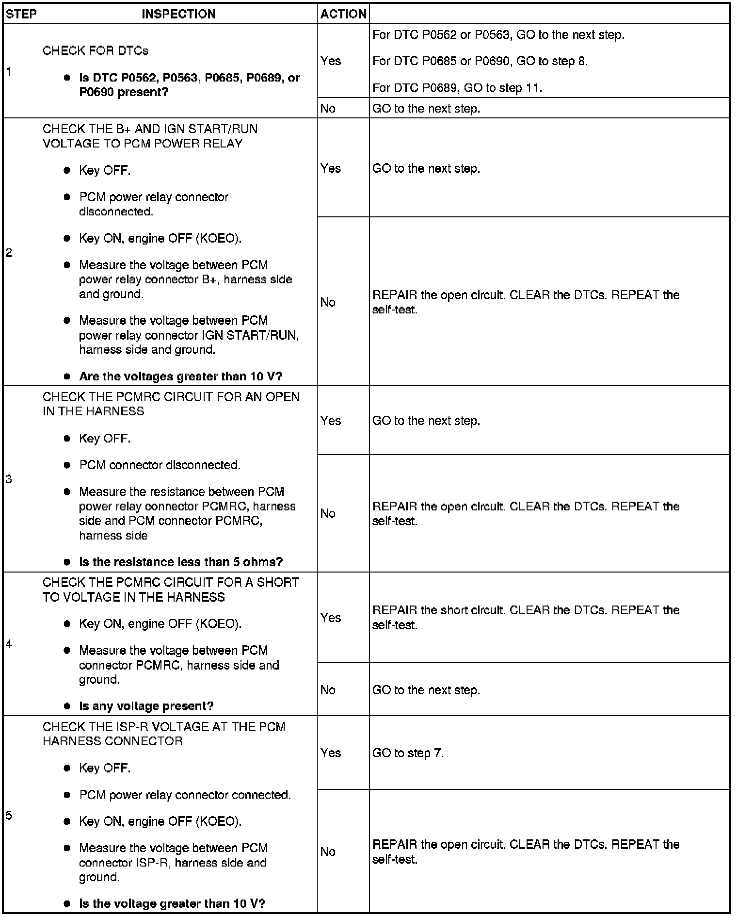 - Harness circuits: B+, IGN START/RUN, INJPWRM, ISP-R, PCMRC, VPWR and GND