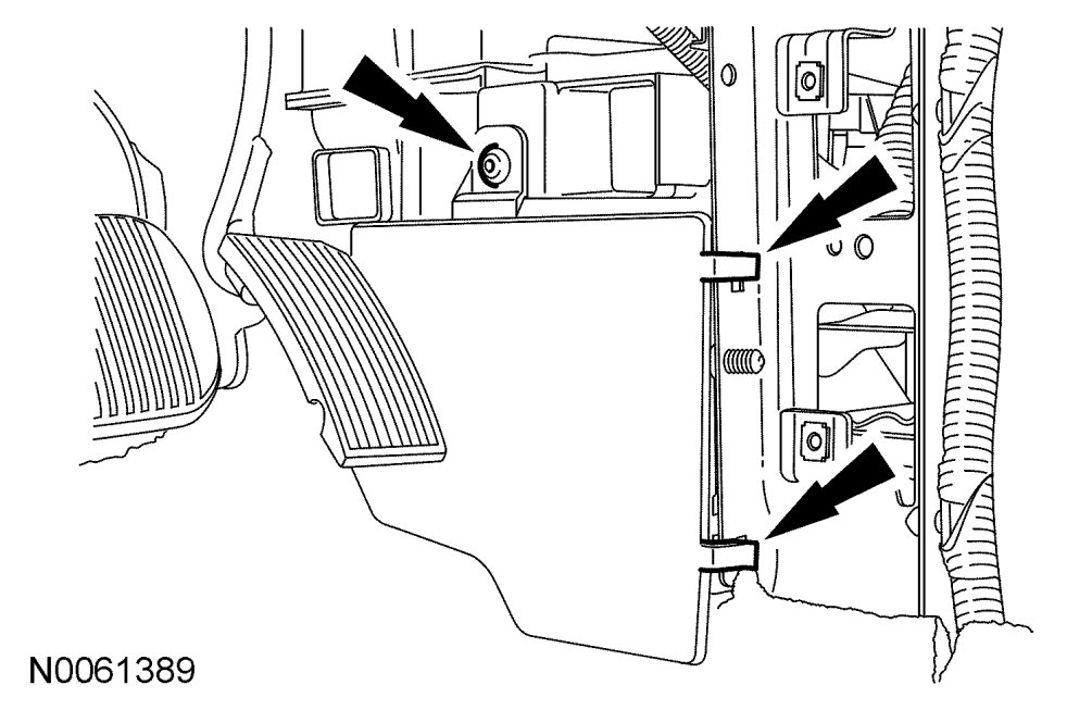 3. Remove the 2 front LH floor console screws and position the carpet aside to access the RCM bolts.
