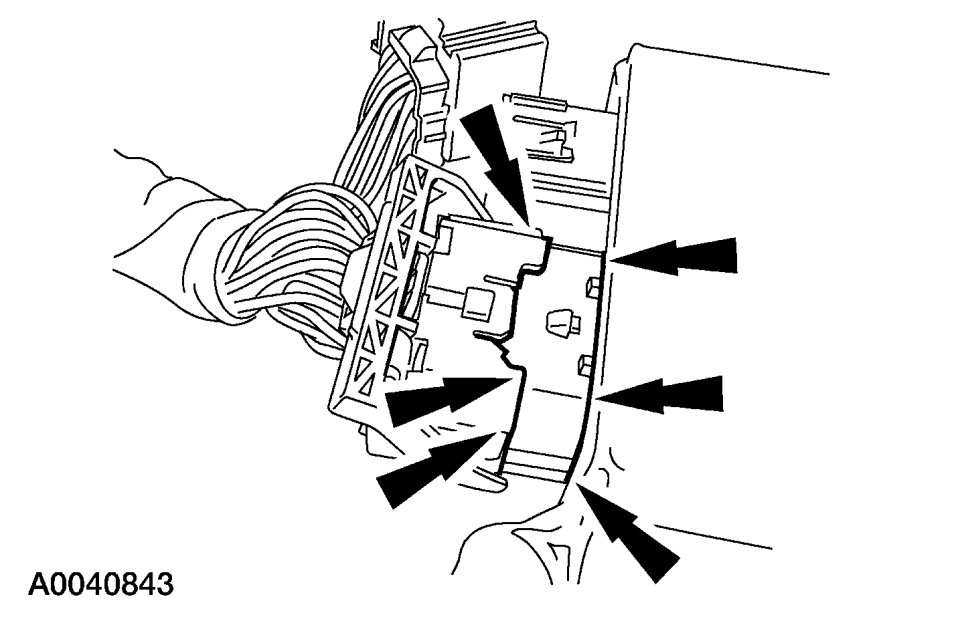 WARNING:Do not handle, move or change the original horizontal mounting position of the restraints control module (RCM) while the RCM is connected and the ignition switch is ON. Failure to follow this instruction may result in the accidental deployment of the safety canopy and cause serious personal injury or death.
