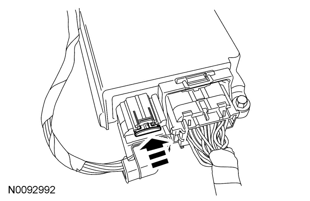 5. Disengage the lock tab, press and disconnect the small RCM electrical connector.