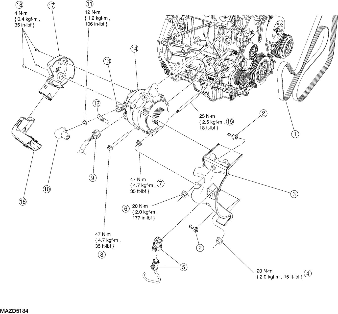 - To install, tighten to 25 Nm {2.5 kgf-m, 18 ft-lbf}.