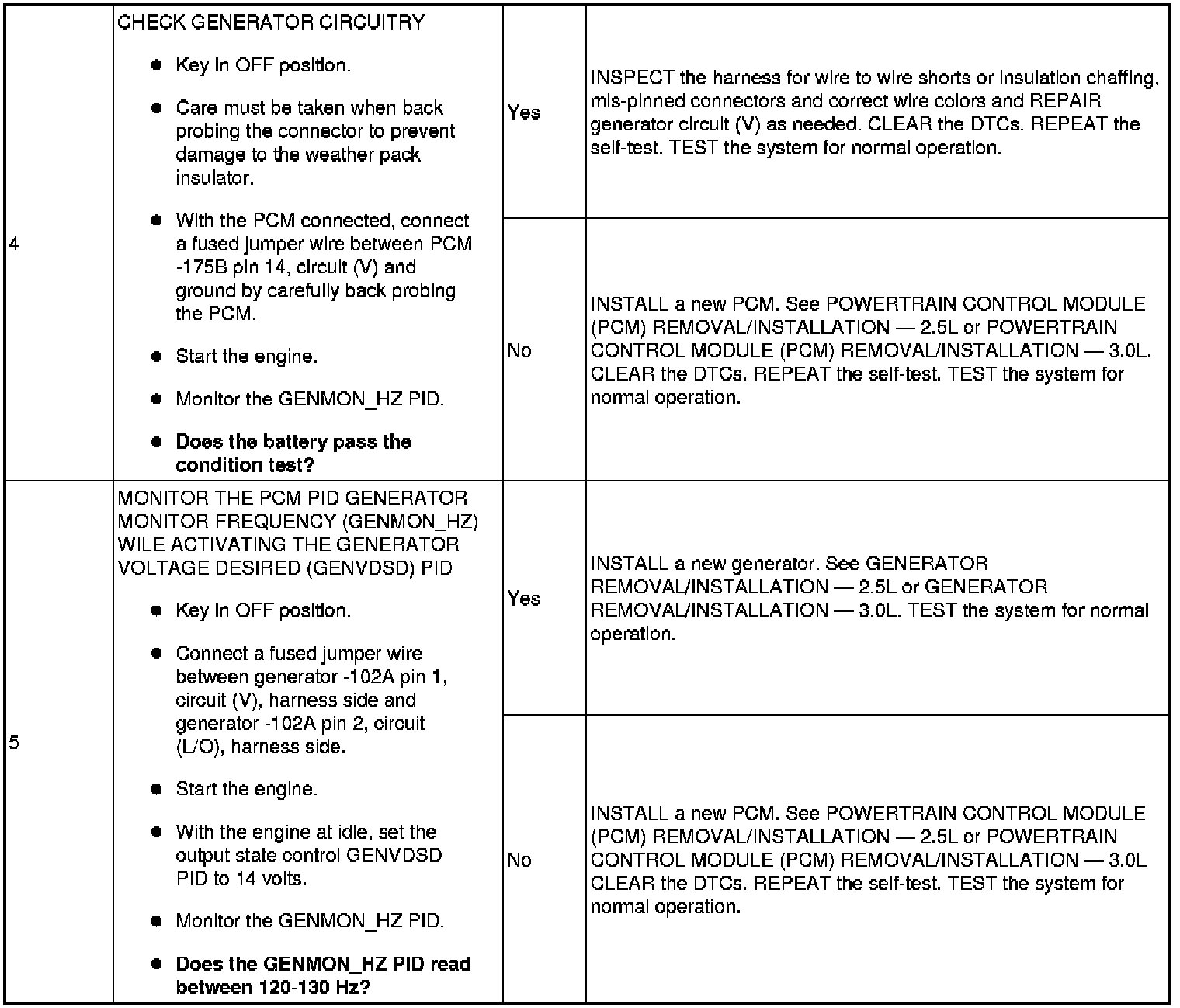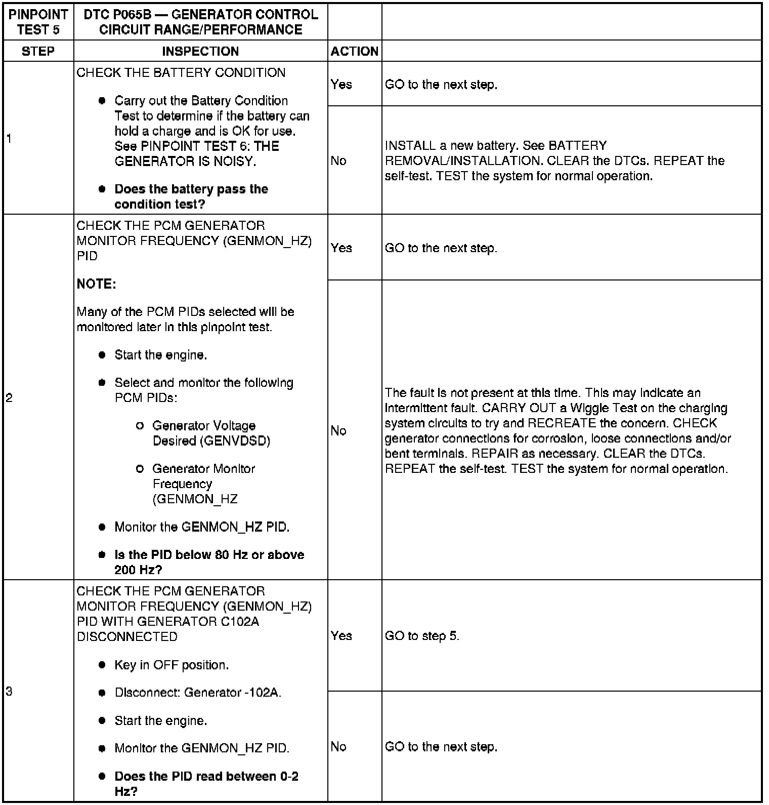 Pinpoint Test 5: DTC P065B - Generator Control Circuit Range/Performance