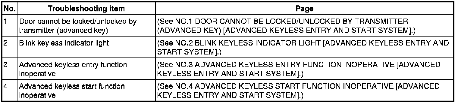 Symptom Troubleshooting Chart - Advanced Keyless Entry and Start System