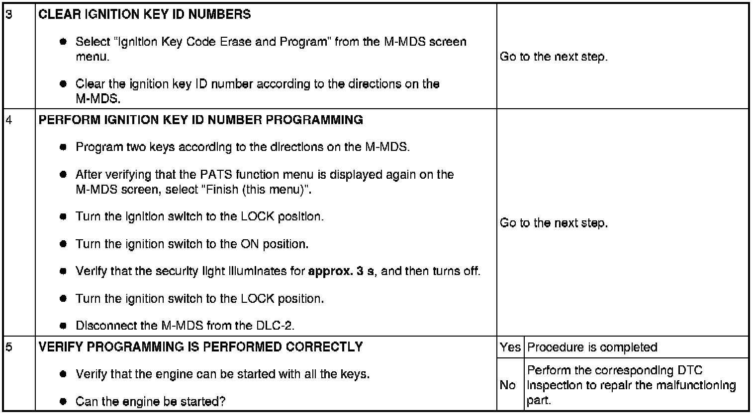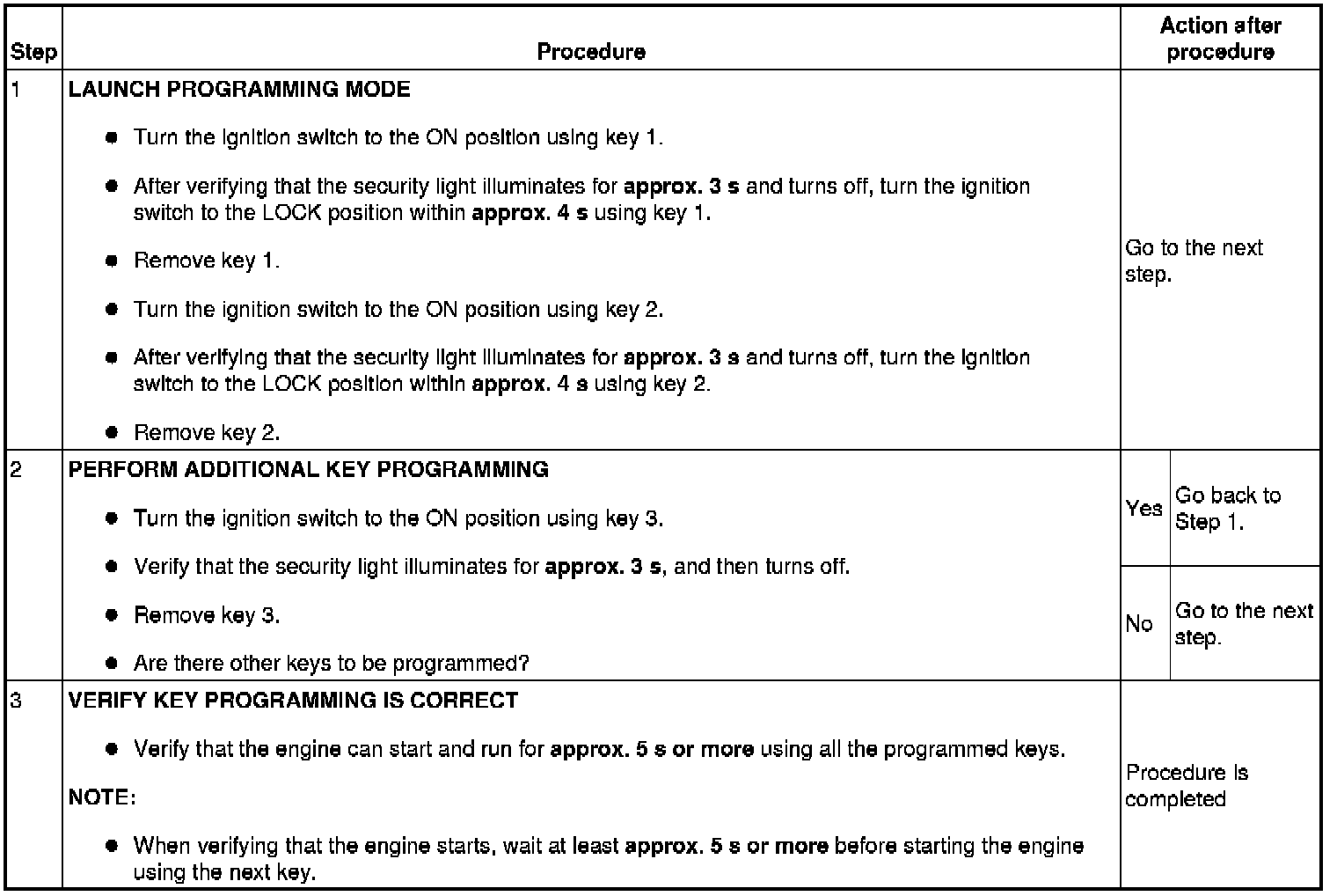 Immobilizer System-Related Parts Service and Programming Procedure Table