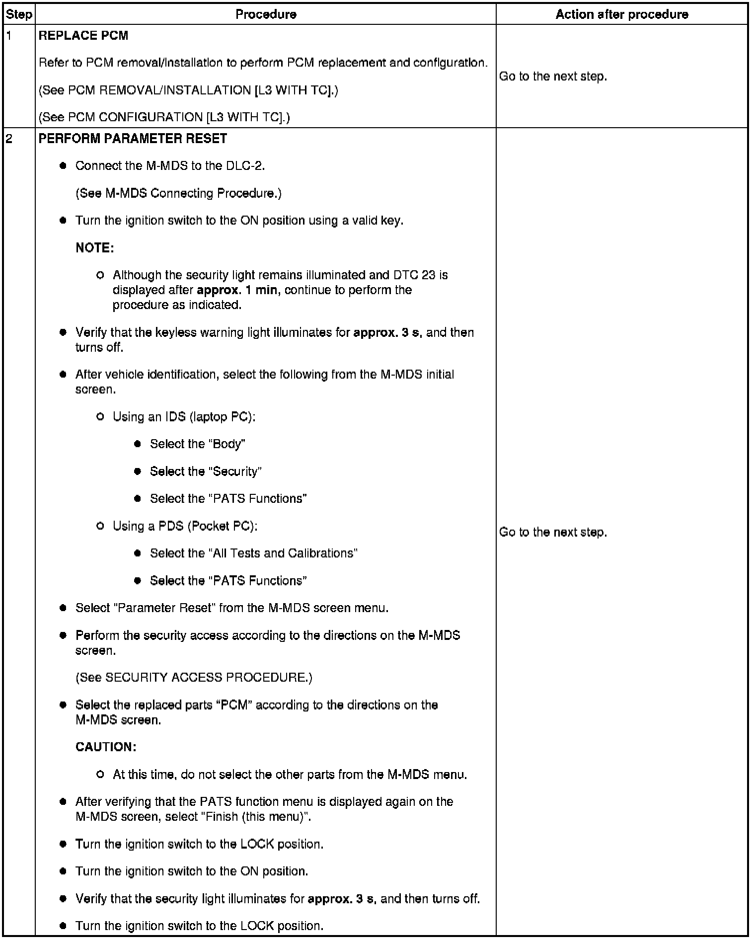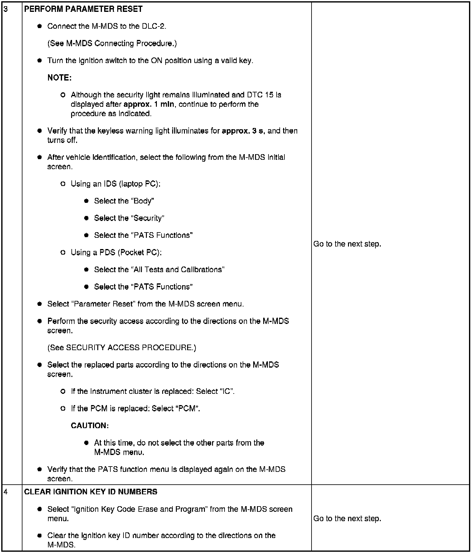 No.6 Programming Procedure Due to Simultaneous Replacement of Immobilizer System-related Parts (PCM and Instrument Cluster)