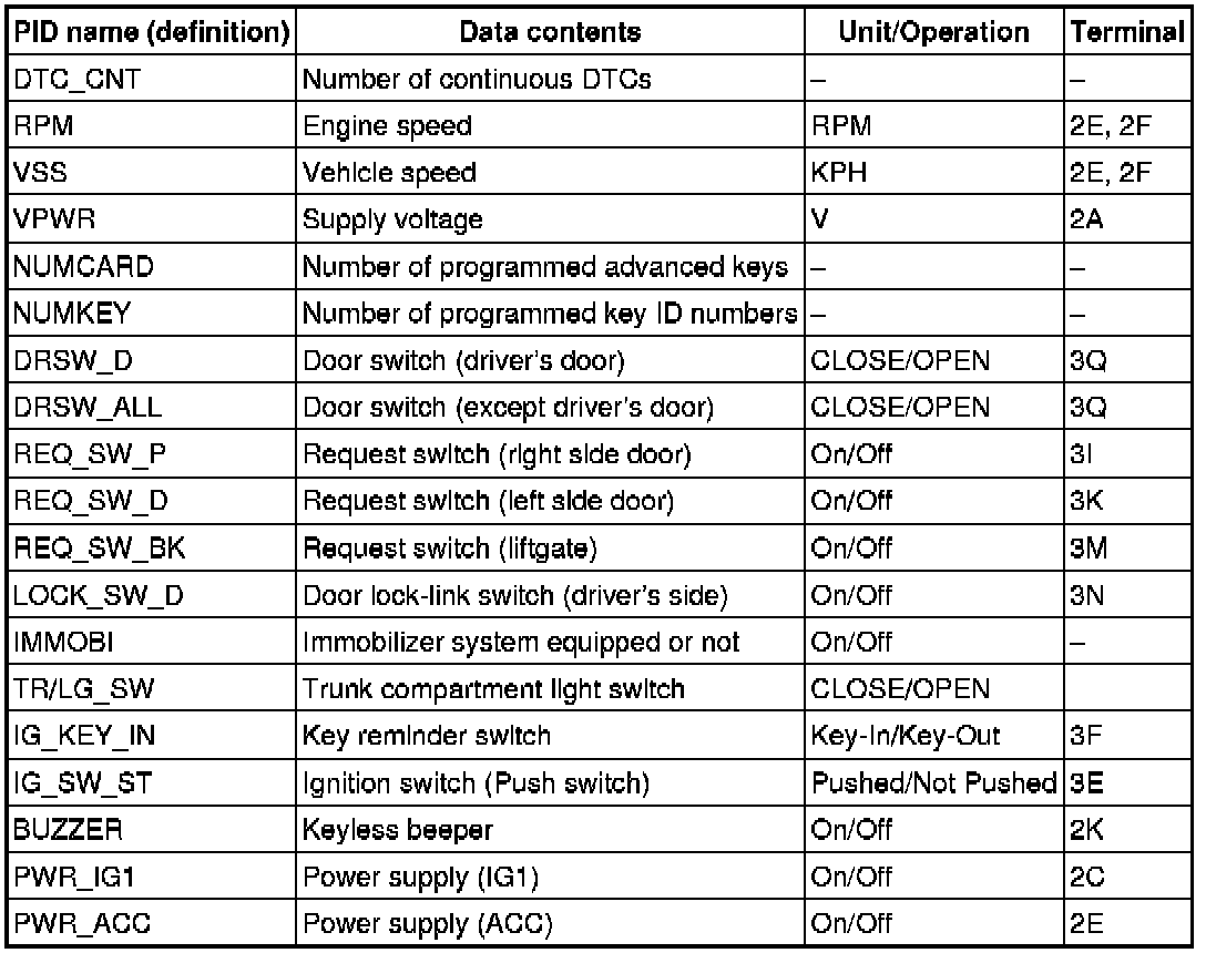 PID/DATA MONITOR TABLE [ADVANCED KEYLESS ENTRY AND START SYSTEM]