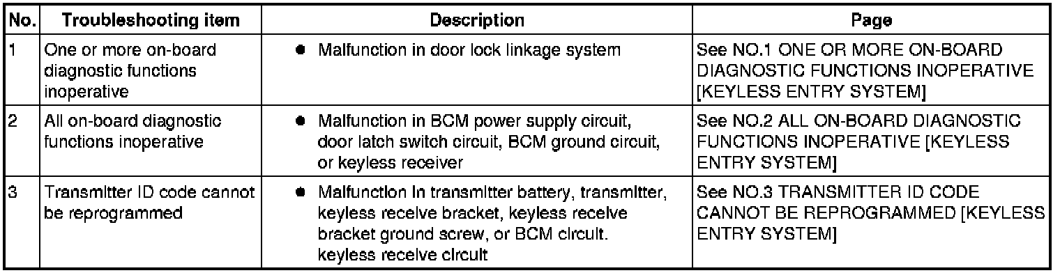 SYMPTOM TROUBLESHOOTING CHART [KEYLESS ENTRY SYSTEM]