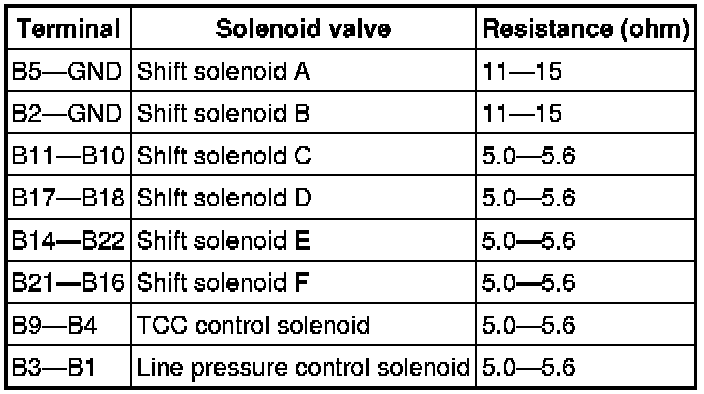 Solenoid valve resistance (ATF temperature: 20 °C {68 °F})