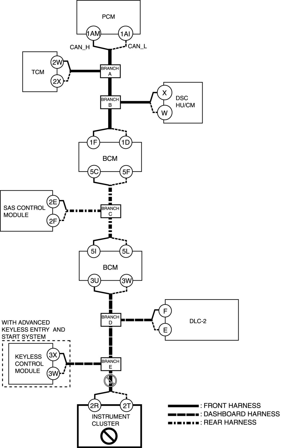 - Wiring harness between DSC HU/CM terminal X and branch B