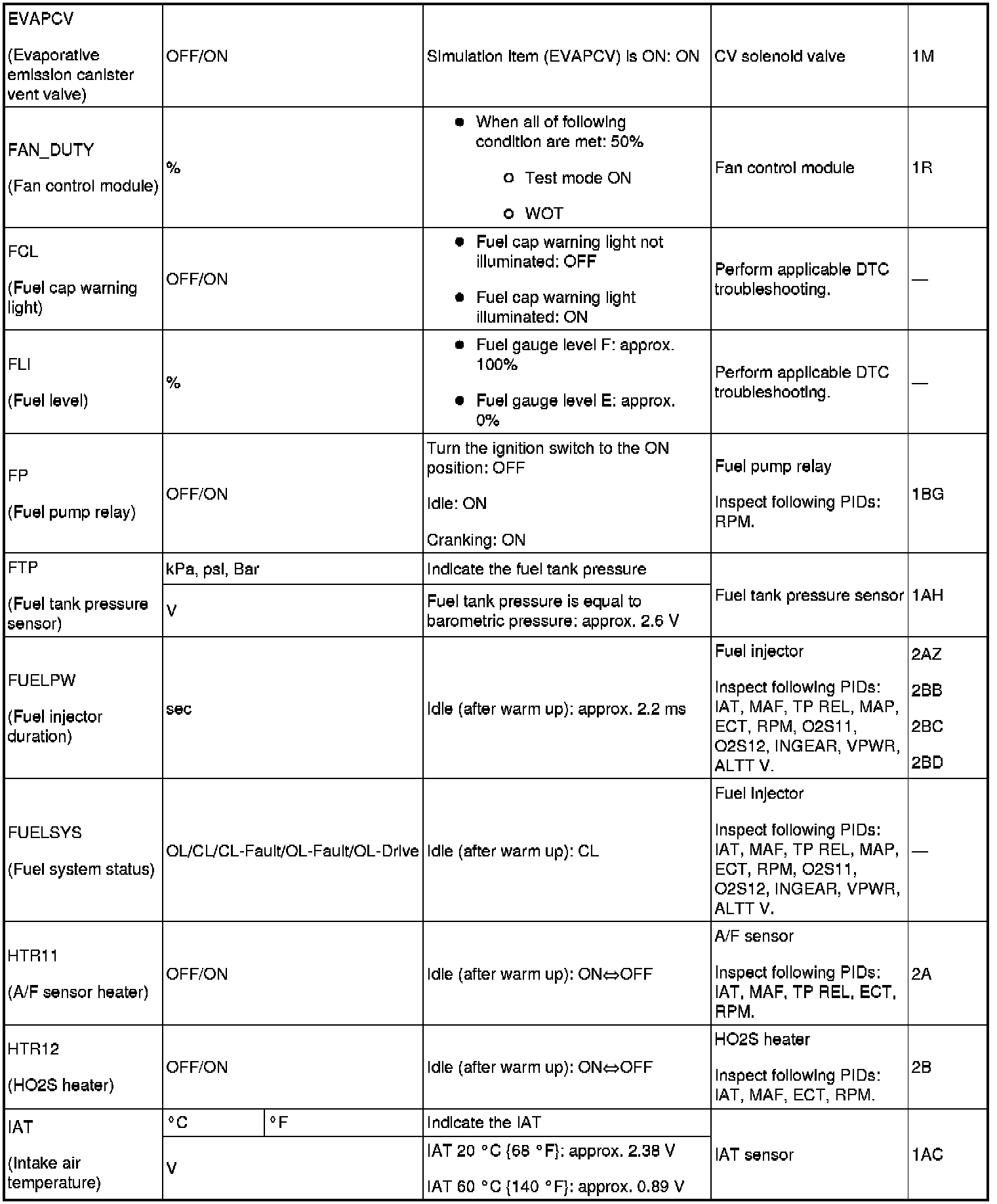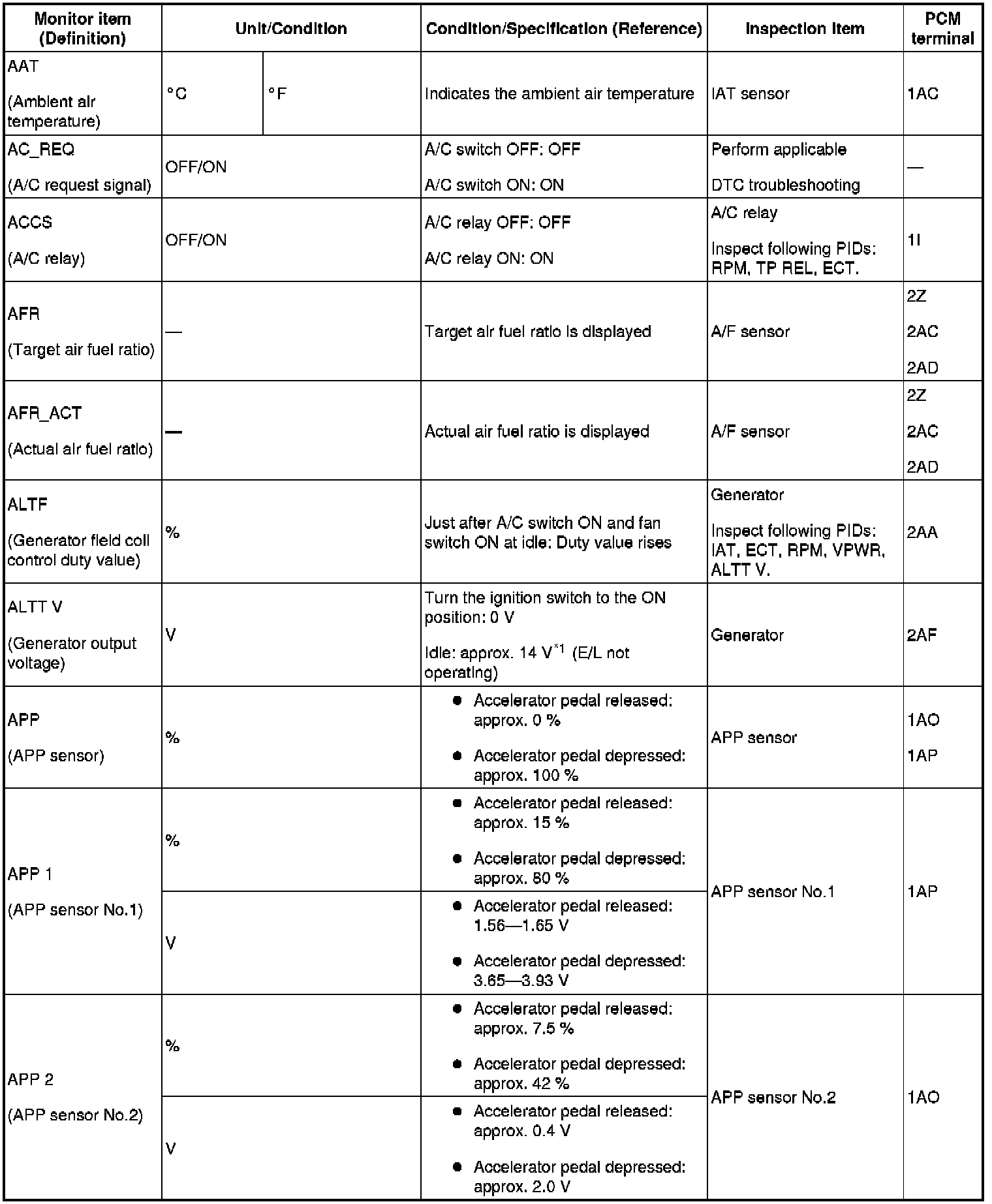 PID/DATA Monitor Table (Reference) (Part 1):