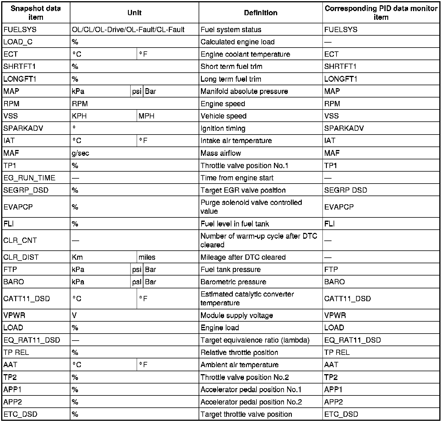 PID/DATA monitor table (reference)
