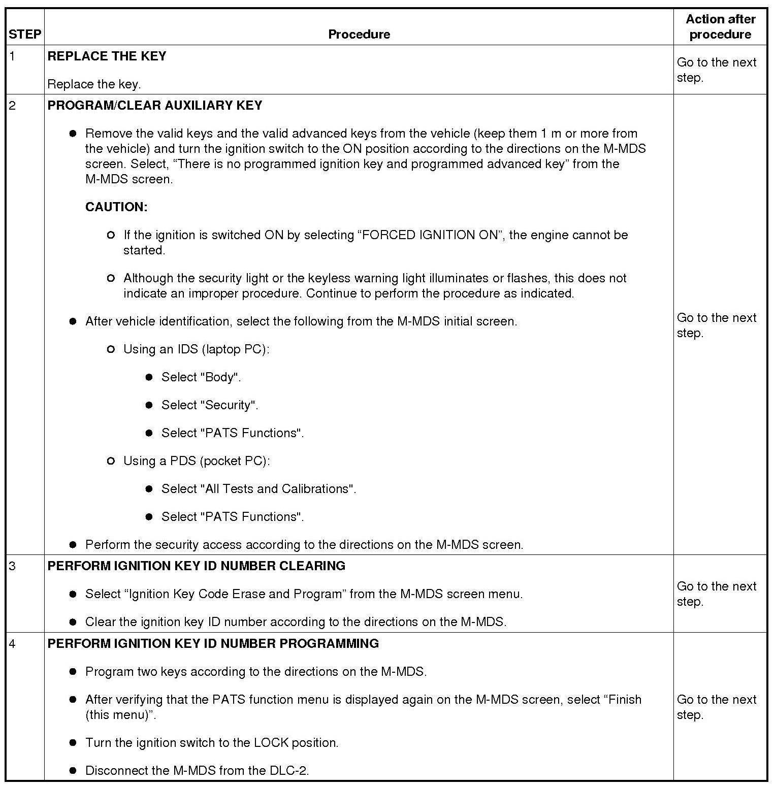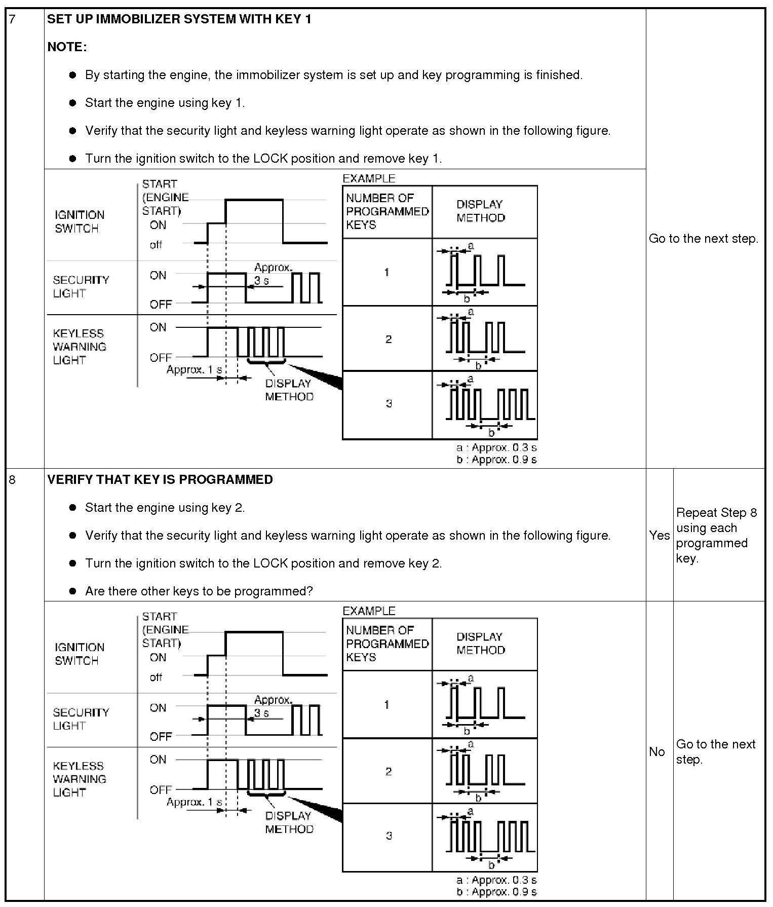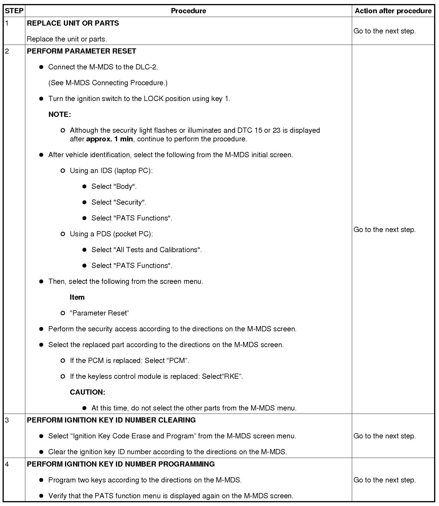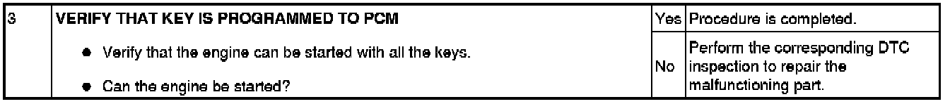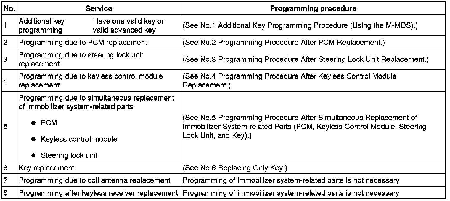 Immobilizer System-Related Parts Service and Programming Procedure Table