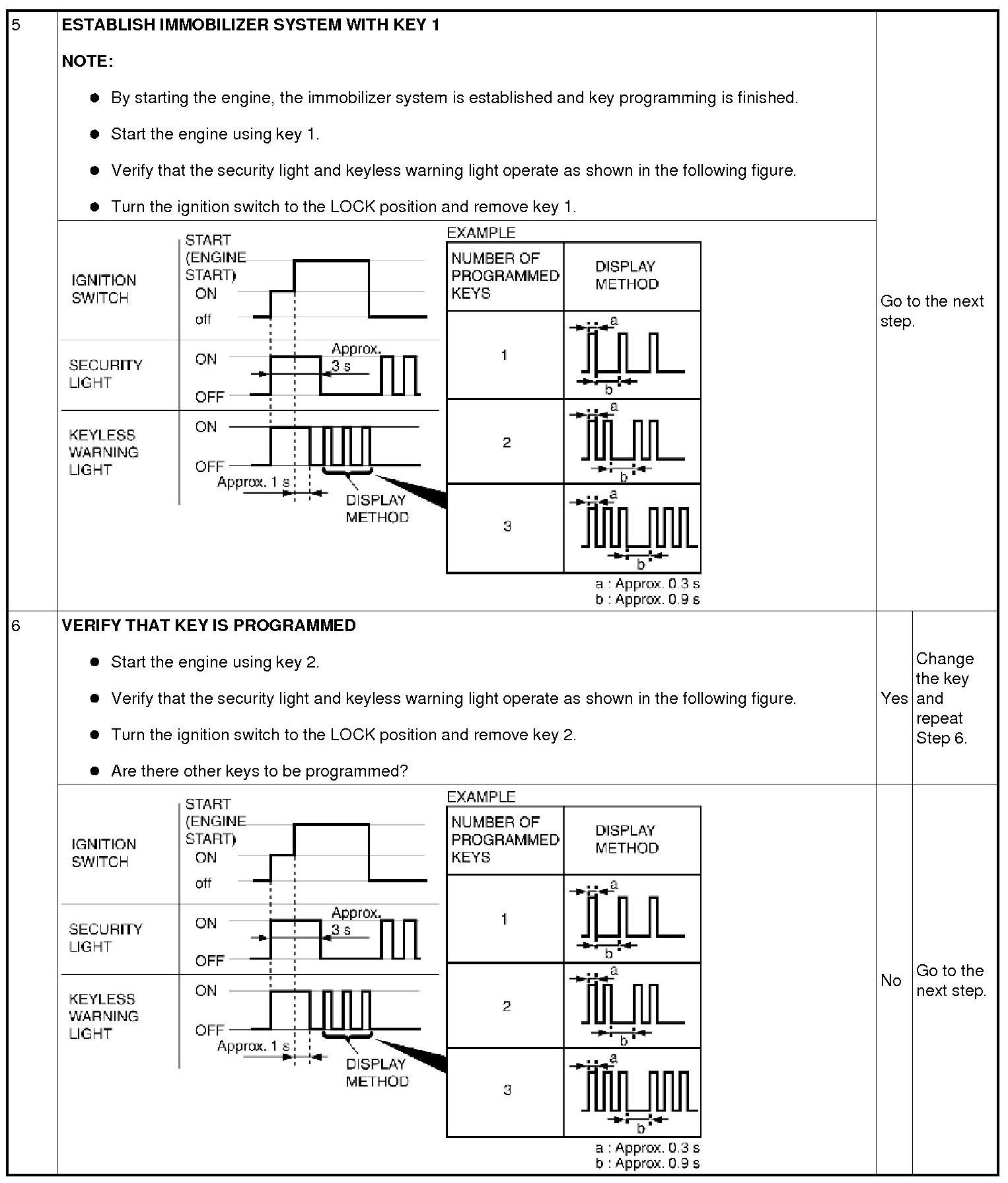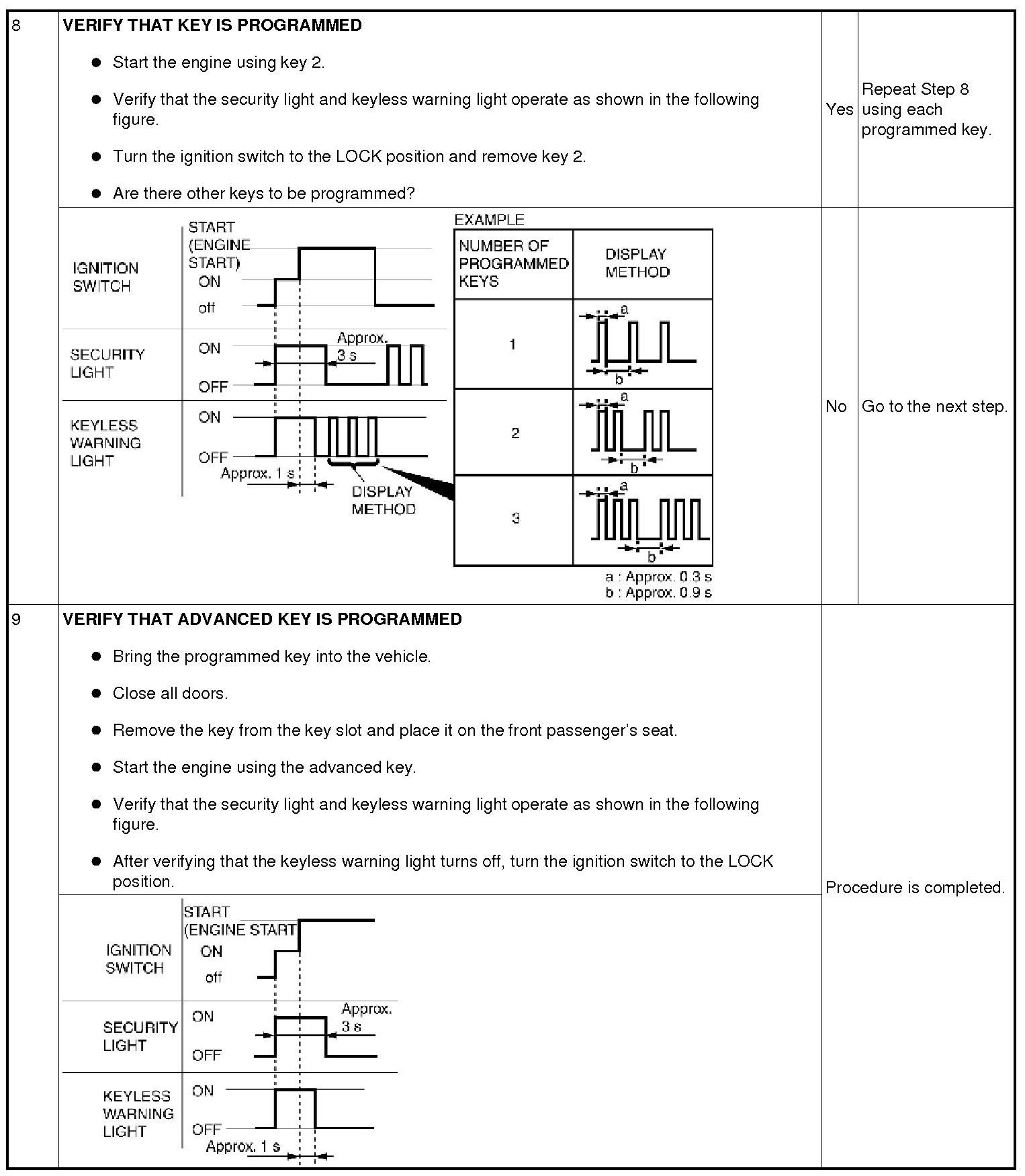 - Although the security light or the keyless warning light illuminates or flashes, this does not indicate an improper procedure. Continue to perform the procedure as indicated.