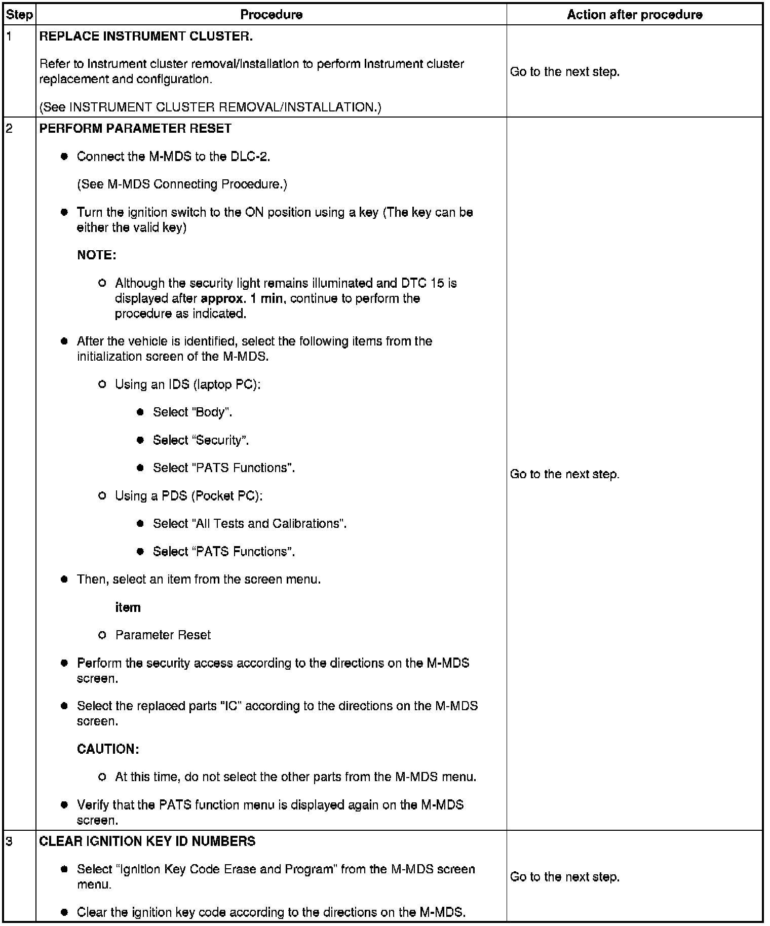 No.6 Programming Procedure Due to Simultaneous Replacement of Immobilizer System-related Parts (PCM and Instrument Cluster)