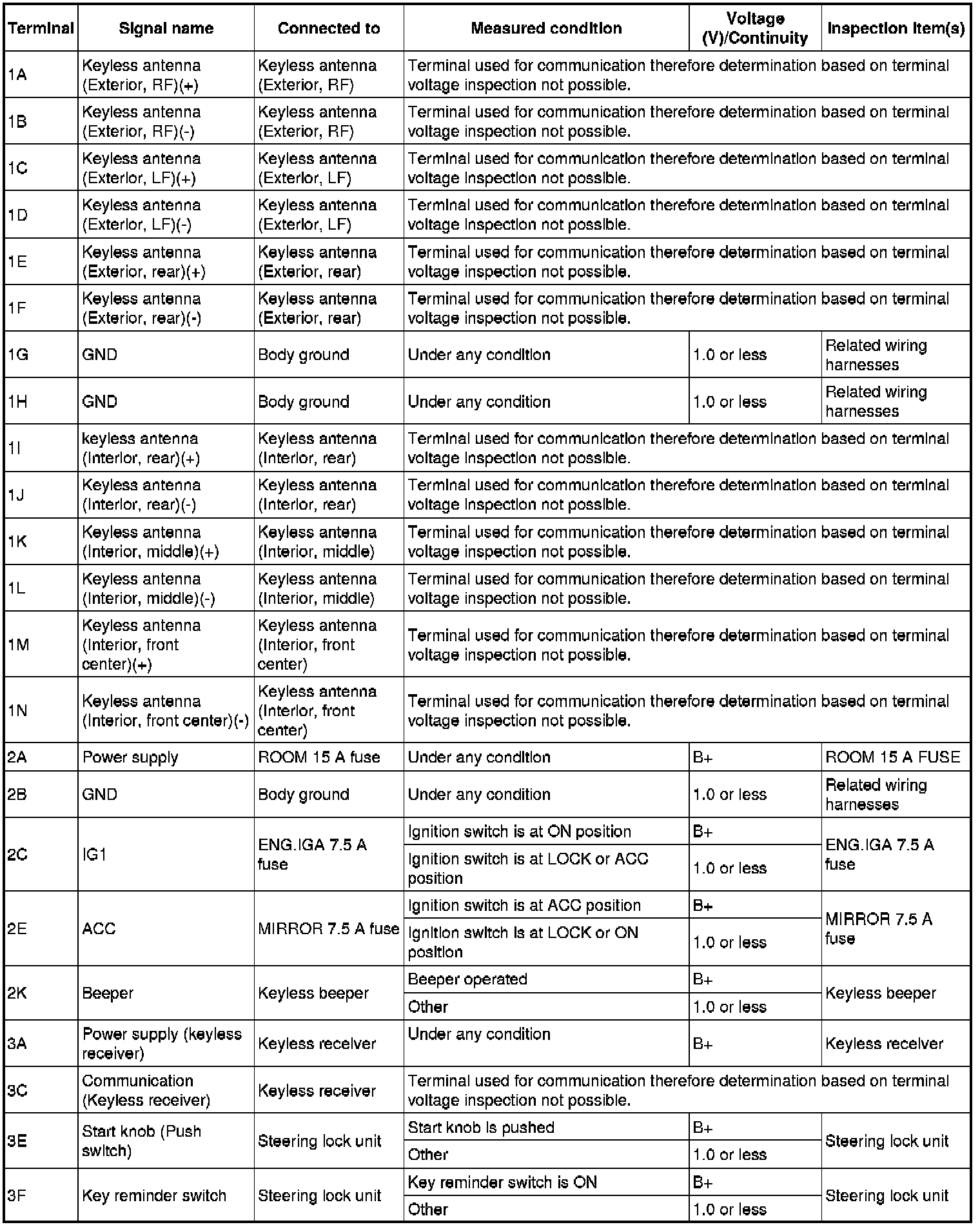 KEYLESS CONTROL MODULE INSPECTION [ADVANCED KEYLESS ENTRY AND START SYSTEM]