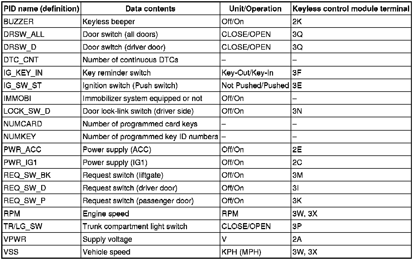 PID/DATA MONITOR TABLE [ADVANCED KEYLESS ENTRY AND START SYSTEM]