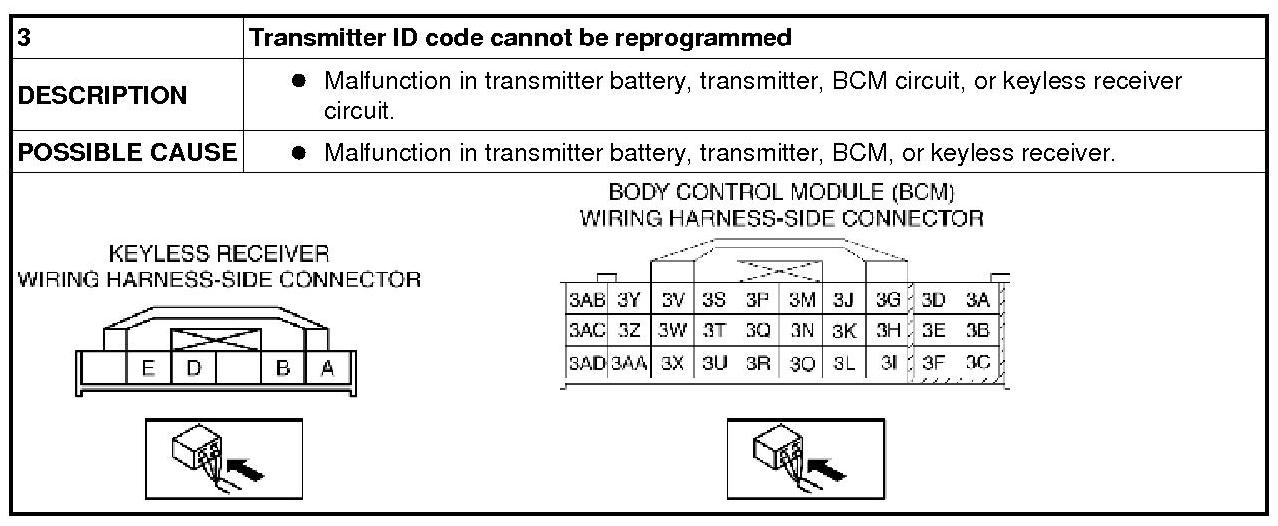 No.3 Transmitter ID Code Cannot Be Reprogrammed - Keyless Entry System