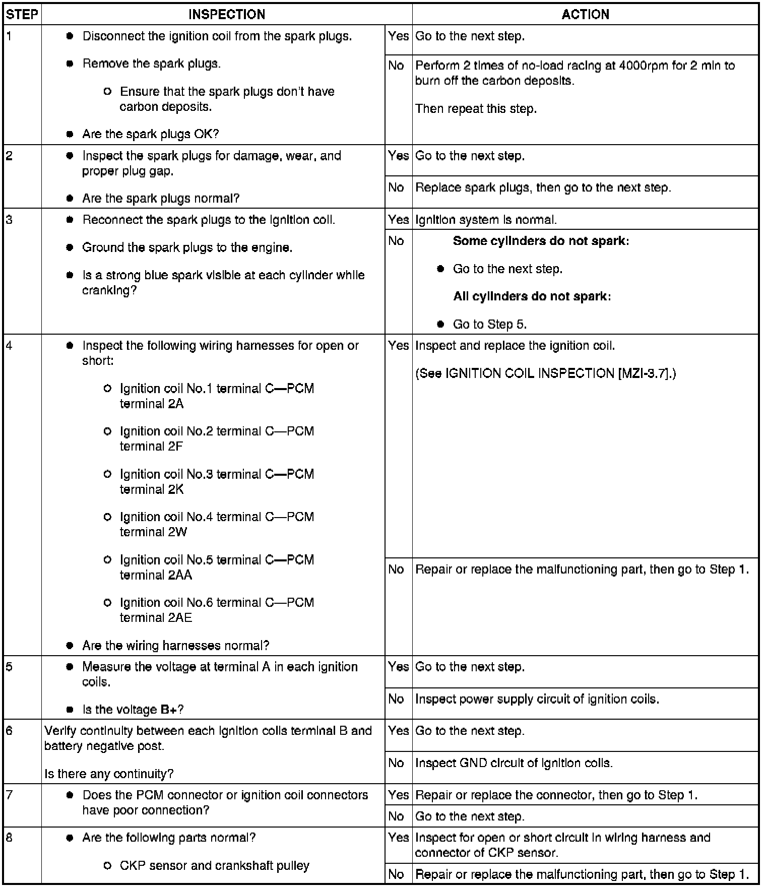 3. Inspect the ignition system in the following procedure.