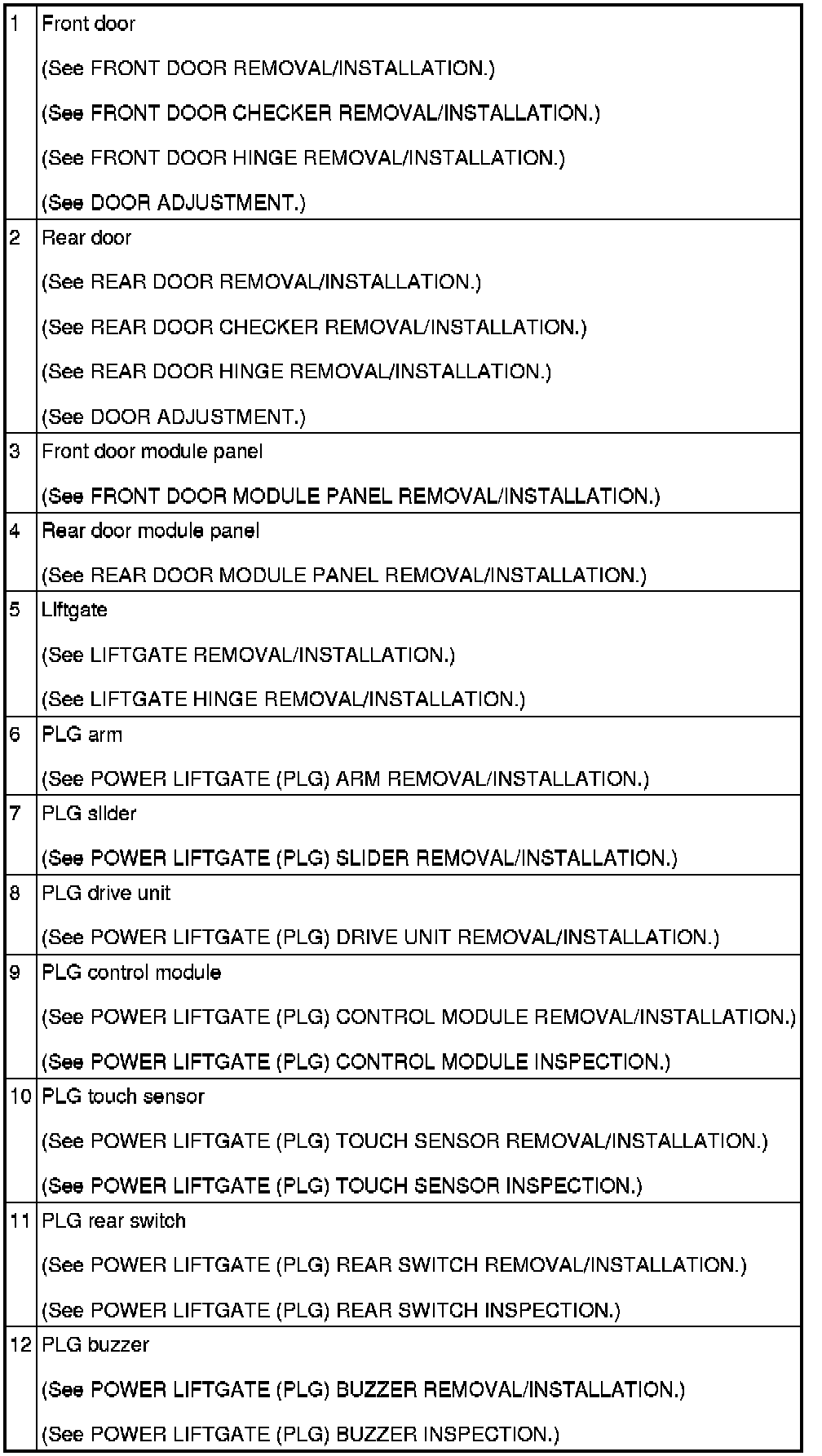 DOOR AND LIFTGATE LOCATION INDEX