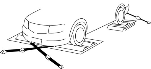 2. Support the wheels (front or rear) on the side to be measured (near the wheels) using a wheel balancer sensor stand.