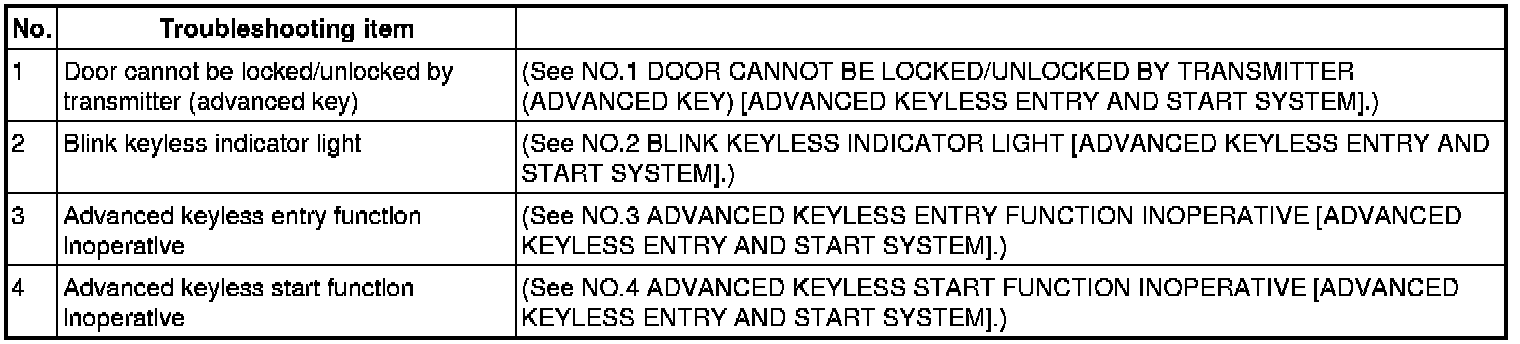 SYMPTOM TROUBLESHOOTING CHART [ADVANCED KEYLESS ENTRY AND START SYSTEM]