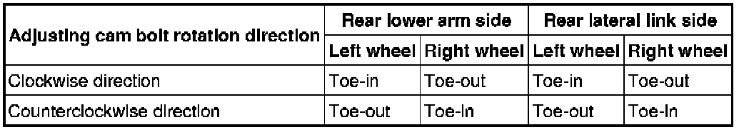 2. Rotate the adjusting cam bolt in either direction to adjust the camber and total toe-in.
