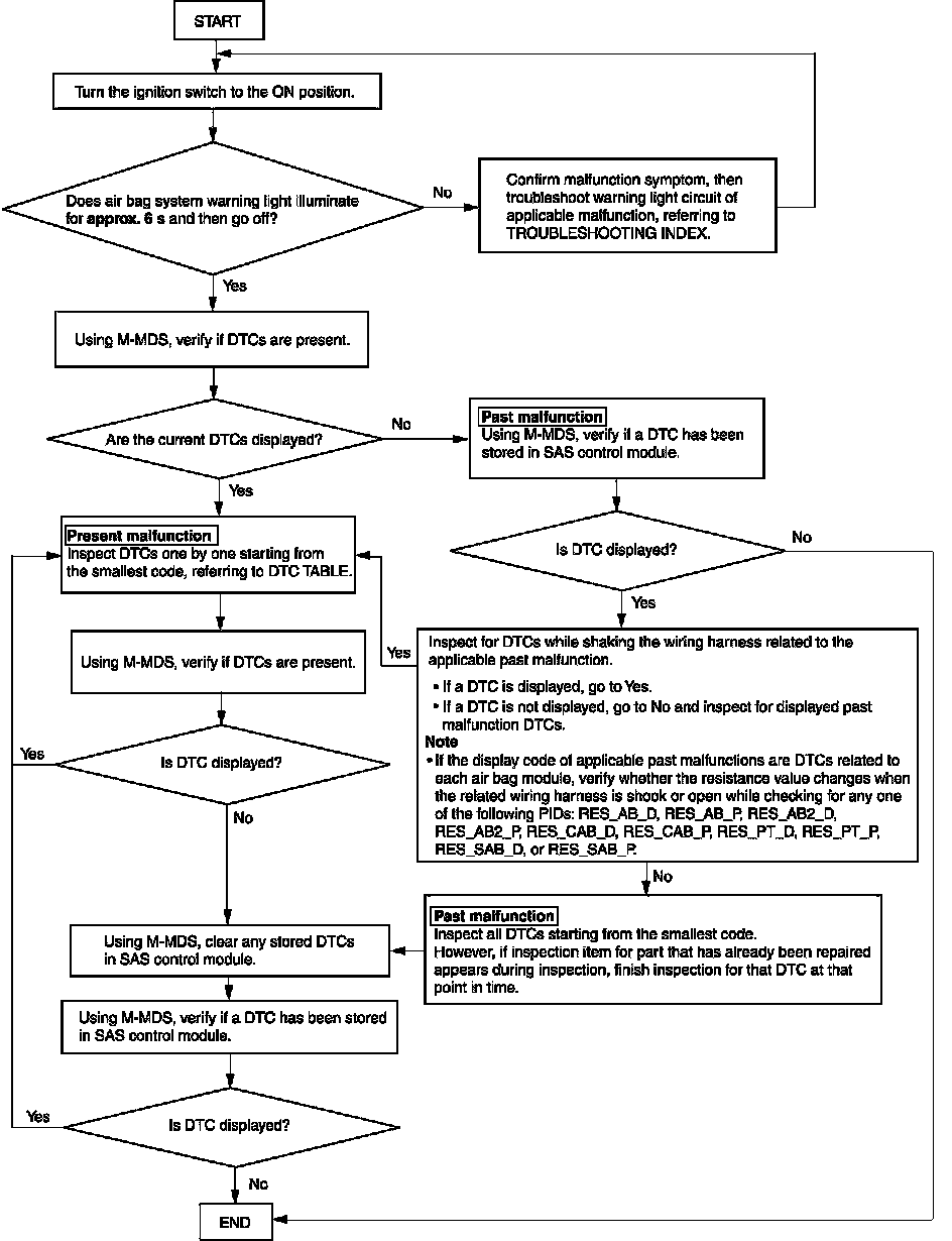 - When DTCs of the present malfunction are no longer output after present or past malfunctions or both have been repaired, be sure to perform past malfunction display cancellation to prevent repair of malfunctions that have already been repaired.