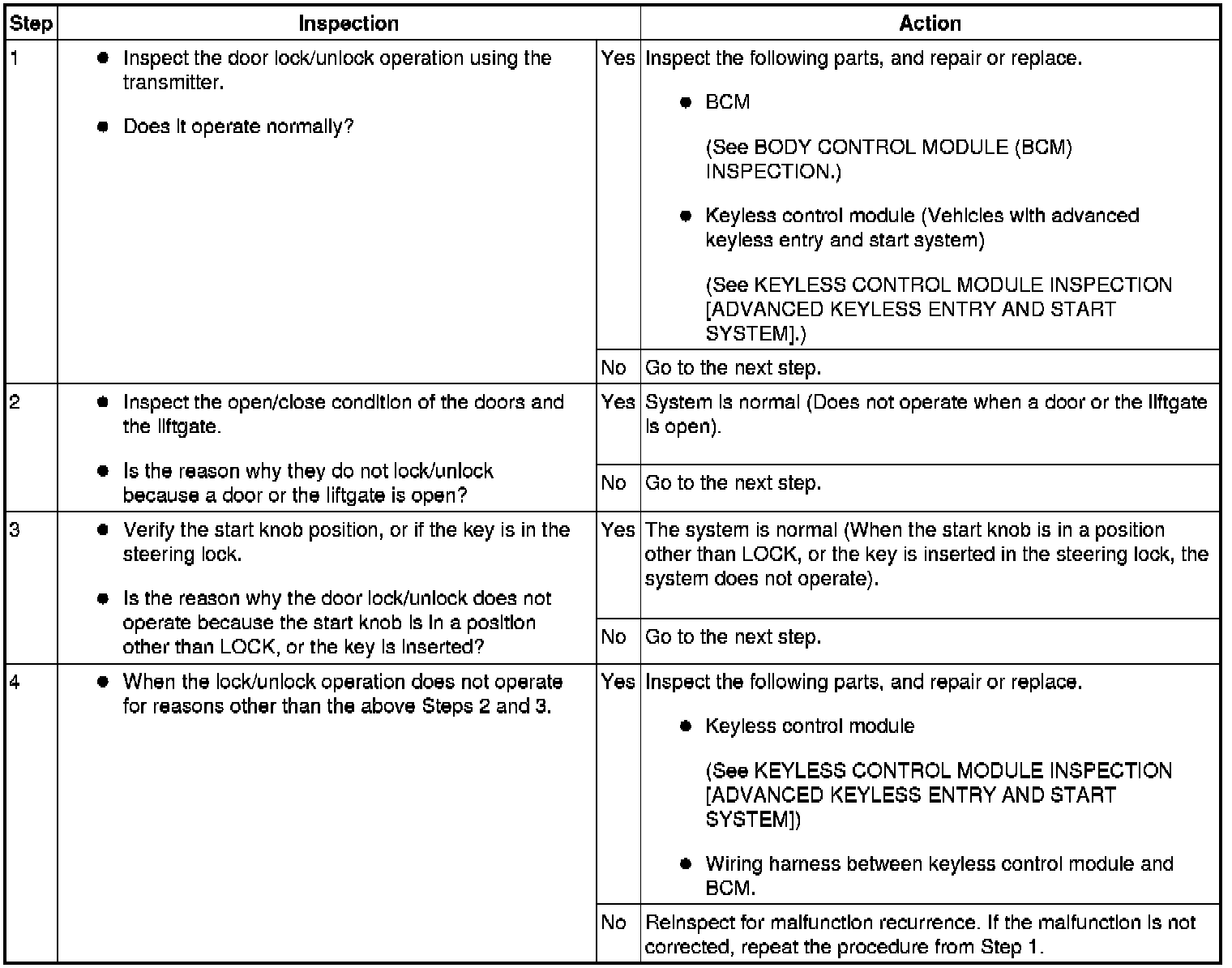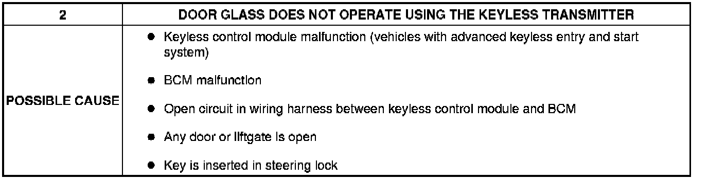 No.2 DOOR GLASS DOES NOT OPERATE USING THE KEYLESS TRANSMITTER [POWER WINDOW SYSTEM (EXTERIOR OPEN FUNCTION)]